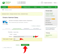 Шаг 5. В черном меню при помощи стрелочки выберите "Капитал-Связь". Нажмите кнопку "Продолжить".
